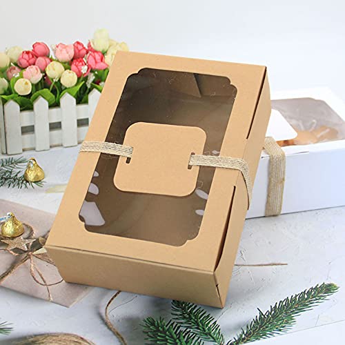 12 Pezzi Scatole per Biscotti, Scatola per Torte, Scatole per Dolci,Rettangolari, Finestre Trasparenti, con 12 Carte di Carta e Un Rotolo di Spago, per Crostate, Torte, Pasticcini, Ciambelle, Muffin