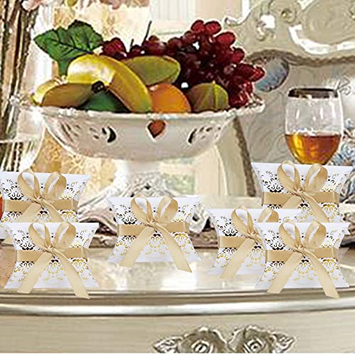 50 Pezzi Scatole di Caramelle a Cuscino, Kuaikely Scatole Portaconfetti Matrimonio, Scatola Caramelle Carta Cuscino, Scatole di Caramelle per Cuscini, Forma di Cuscino Scatole Bomboniere