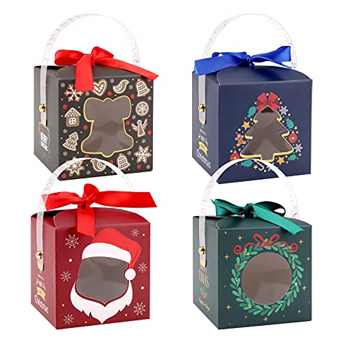 24 Pezzi Scatole di carta natalizie Scatole da Regalo di Natale con manico trasparente e finestra Scatole di caramelle Scatole di biscotti di Natale con nastro per feste di Natale