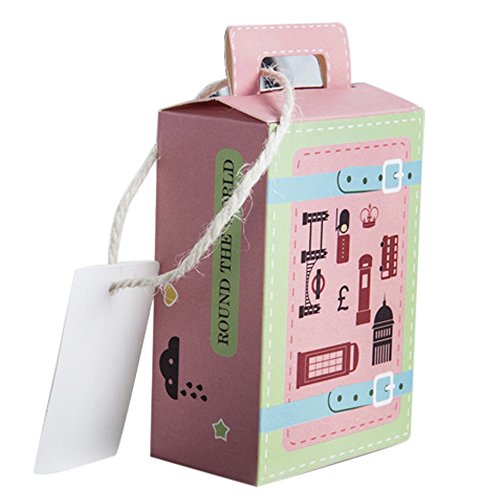 50 Pezzi Scatole Cartoncino Portaconfetti Con Maniche Etichetta Forma Valigia Londra (VERDE E ROSA)