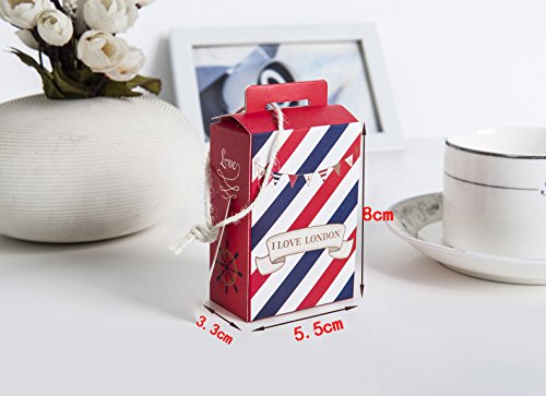 50 Pezzi Scatole Cartoncino Portaconfetti Con Maniche Etichetta Forma Valigia Londra (ROSSO E BLU)