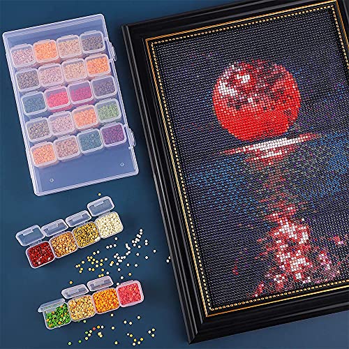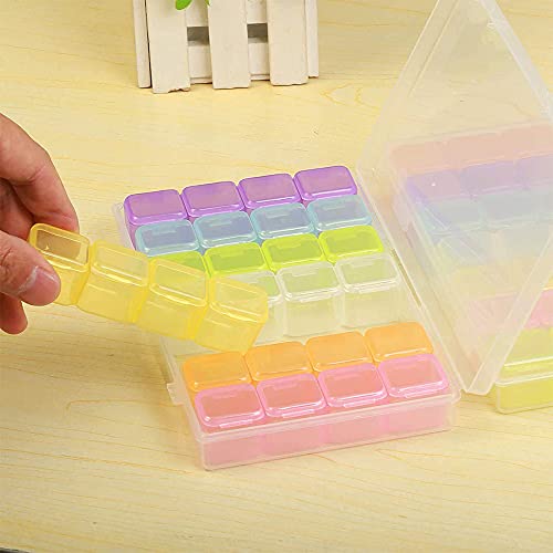 3 Pezzi Scatole Immagazzinaggio in Plastica, Scatola Ricamo a Diamante, Scomparti in Plastica Trasparente, 28 Griglie Rimovibile Portatile Contenitore Perline Plastica per Nail Art, Gioielli, Diamanti