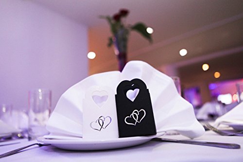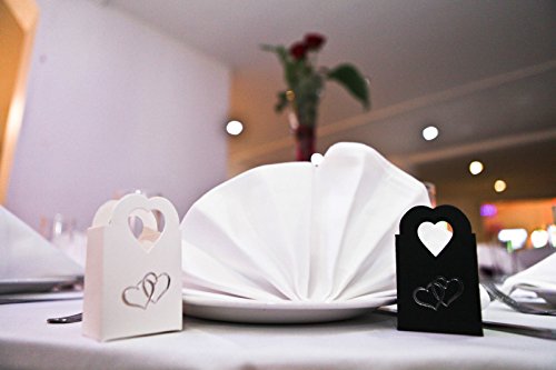 100 Pezzi Scatole Portaconfetti Bomboniere Con Manico Cuore Elegante Bianco e Nero Matrimonio (50pz Bianco & 50pz Nero)