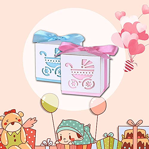 50 Pezzi Scatole Regalo Per Feste,Scatole Bomboniere Baby Shower,Scatola Vuota Caramelle Bambini,Confezione Regalo Caramelle Nastro,Viene Fornito Con Nastri,Adatto Per Baby Shower,Feste Di Compleanno