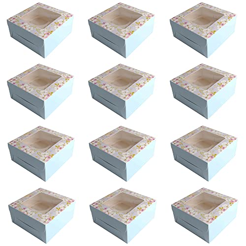 12 Pezzi Scatole per Torte Piccole, Scatole per Cupcake con Finestra, Scatole Pasticceria Cartone, per Piccole Torte, Muffin, Pasticcini, Feste di Compleanno, Matrimoni, Natale(16*16*7.5 cm)