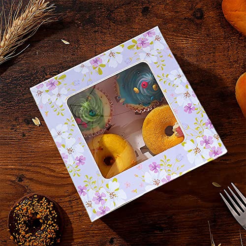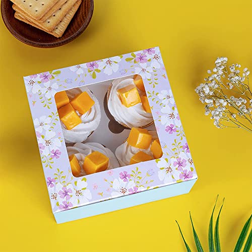 【Finestra di Visualizzazione】I lati e il fondo sono di colore azzurro, ci sono bellissimi disegni floreali nella parte superiore e ha una finestra trasparente. può facilmente vedere le torte e la torta di compleanno e vedere chiaramente il contenuto delle scatole.