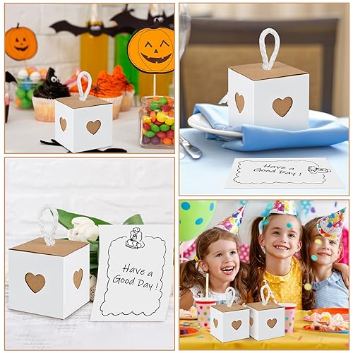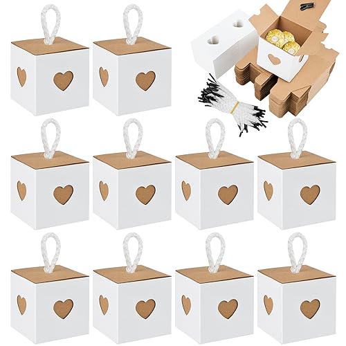 50 Pezzi Scatoline Cartone,Scatoline Carta Kraft bianche e marroni con cuore, Scatoline Portaconfetti Matrimonio, Scatole Per Bomboniere con Blocco note per Feste, Compleanni e Matrimoni