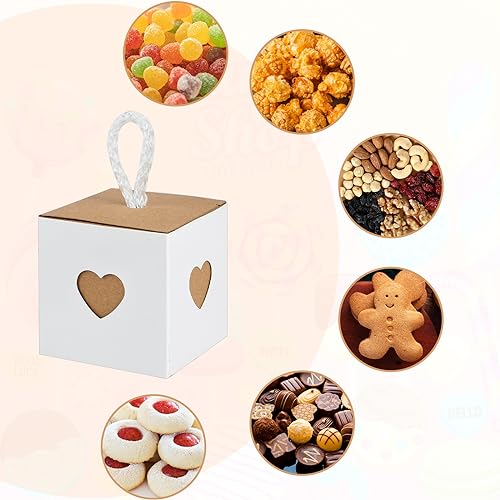 【Design a forma di cuore】La Scatola Regalo Piccola con Coperchio misura 5,5 x 5,5 x 5,5 cm in bianco e marrone e ha un design a cuore su tutti e quattro i lati, che è pieno di amore, visivamente elegante, retrò e bello, compatibile con tutti i tipi di tavoli di nozze, rendendo il vostro regalo più squisito.