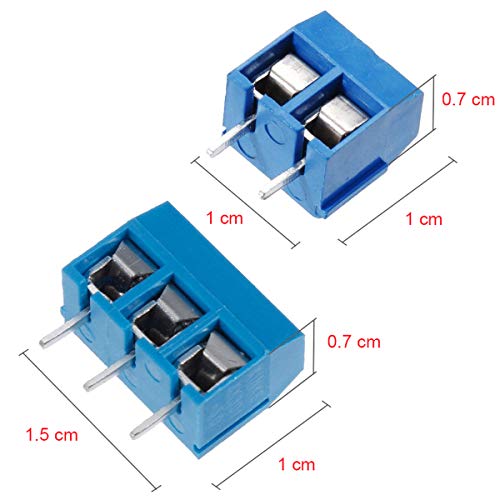 Morsettiera a vite: totale 15 pezzi (10 pezzi per 2 pin, 5 pezzi per 3 pin), passo 5,08 mm.