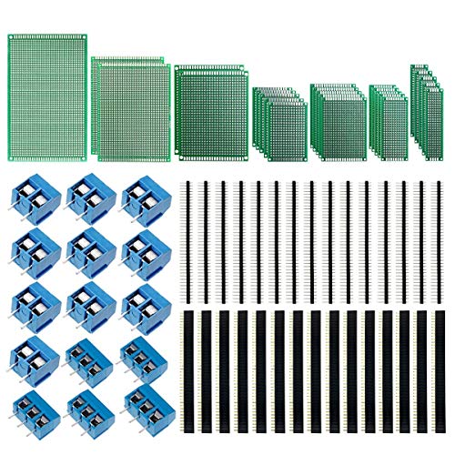Riceverai insieme 25 schede PCB in 7 diverse dimensioni e 30 connettori per connettori per PC e morsettiera a vite da 15 pezzi, quanto è perfetto per il tuo progetto!
