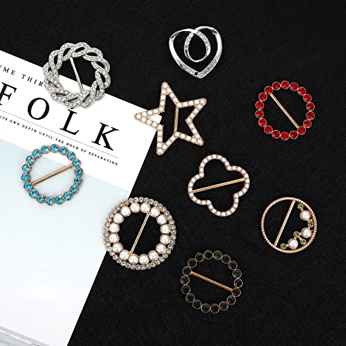 9 Pezzi Clip per Sciarpa in Metallo con Clip per Sciarpa Anello per Sciarpa in Seta in Lega da Donna con Fibbia in Vita con Strass Perla Fibbia con Nodo ad Angolo per Abbigliamento
