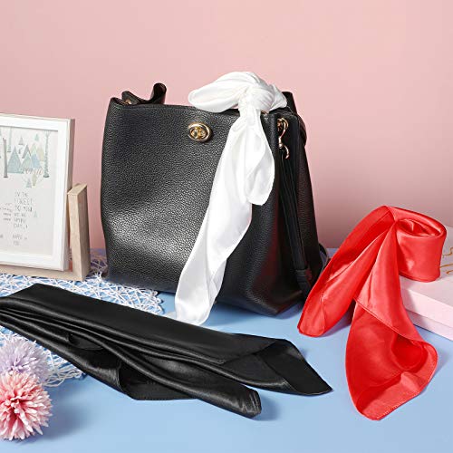 3 Pezzi Sciarpa Quadrata Setosa da Donna, 23,6 x 23,6 Pollici (Nero, Rosso, Bianco)