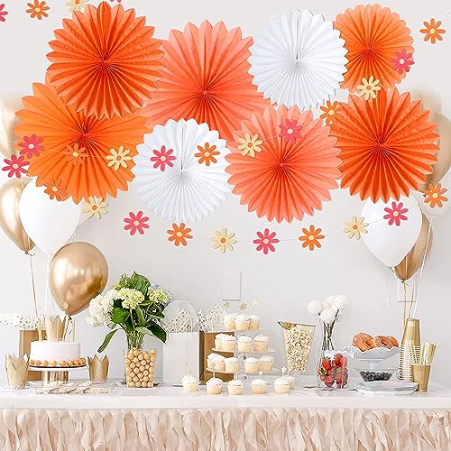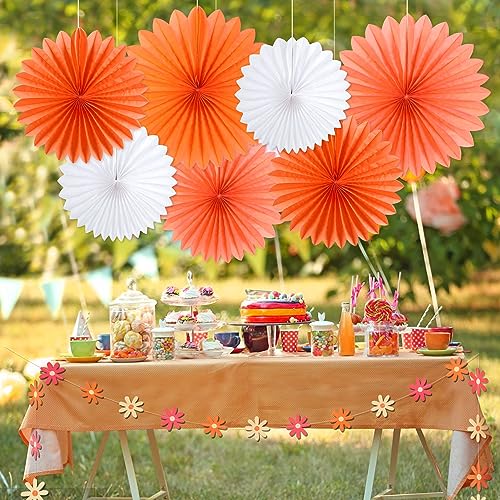 EASY JOY 9 Pezzi Scomparti di carta bianca e arancione con fiori e ghirlande da appendere, scomparti di carta, decorazione per feste di compleanno, matrimonio, decorazione da tavolo
