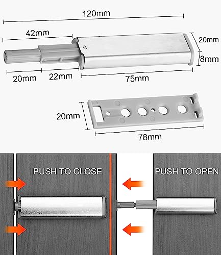 【Ampia gamma di applicazioni】L'apriporta a spinta è adatto a tutti i tipi di armadi, guardaroba, credenze, cassetti, porte, ecc. Con questo apriporta a spinta, non sono necessarie altre maniglie e pomelli, rendendo lo spazio dell'armadio più ordinato e pulito. Non dovrete più preoccuparvi che i vostri bambini si facciano male a causa di maniglie e pomelli diversi. Si apre e si chiude con una leggera spinta, riducendo il rumore.