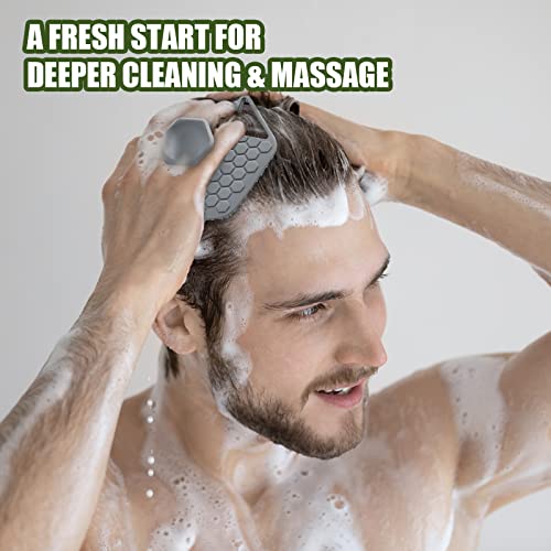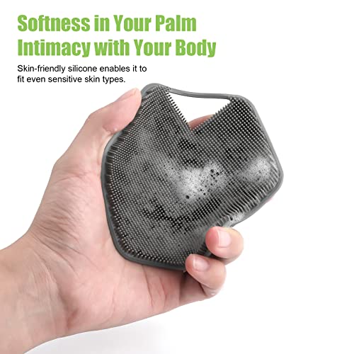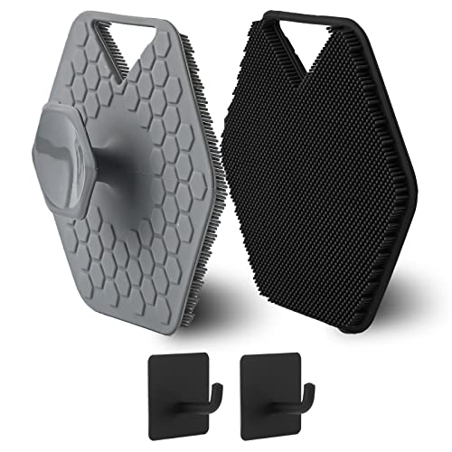 2 Pezzi Scrub Silicone Corpo, Morbido Spazzola Massaggiante Silicone con 2 Ganci Pad Massaggio Doccia Scrubber per Piedi Spazzola a Presa Facile per Tutti i Tipi di Pelle (Grigio, Nero)