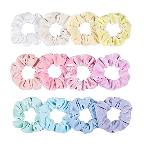 12 pezzi Scrunchies in Velluto - Elastico - Morbido - Fasce - Donne - Ragazze - Accessori Per Capelli - colori misti pastello