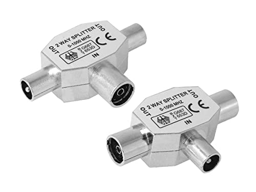 2 Pezzi Sdoppiatore Antenna TV, Splitter Distributore Antenna TV In Metallo, Adattatore TV Accoppiamento Coassiale, Da 1 Maschio A 2 Femmine, Da 1 Femina A 2 Maschi