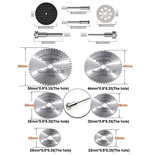Disco da taglio diamantato da 10 pezzi da 22 mm con mandrini da 2 pezzi da 38 mm;