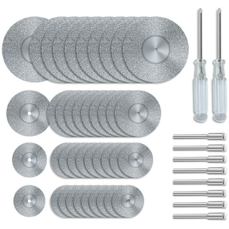 Ci sono diversi set tra cui scegliere, adatti per il taglio, la scanalatura e la rifilatura. È possibile utilizzare il disco da taglio diamantato per tagliare metallo, pietre preziose, porcellana, piastrelle, ceramica, vetro, plastica, legno, tubi, ecc. Specifiche: Materiale: acciaio ad alta velocità Quantità: 31 pezzi, 44 pezzi, 50 pezzi, 60 pezzi (opzionale) Peso della confezione: 31 pezzi: 107 g / 3,77 once 44 pezzi: 152 g / 5,36 once 50 pezzi: 112 g / 3,95 once 60 pezzi: 183 g / 6,46 once Dimensioni confezione: 150 * 120 * 20 mm / 5,91 * 4,72 * 0,79 pollici Lista di imballaggio: 50 pezzi: 40 * Dischi da taglio diamantati 8 * Mandrini 38 *3 mm 2 * cacciaviti (lunghezza 90/92 mm)