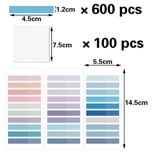 100 note adesive trasparenti, dimensioni: 7,5 * 7,5 cm, 600 fogli di etichette a colori Morandi, dimensioni: 4,5 cm × 1,2 cm.