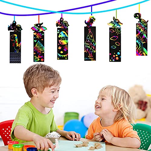 【Segnalibro da grattare arcobaleno】 La confezione include 48 segnalibri arcobaleno da grattare, 48 corde colorate e 24 stilo in legno, design con motivi animali di dinosauro, carino e interessante, i bambini possono scarabocchiare e creare illustrazioni e disegni squisiti.