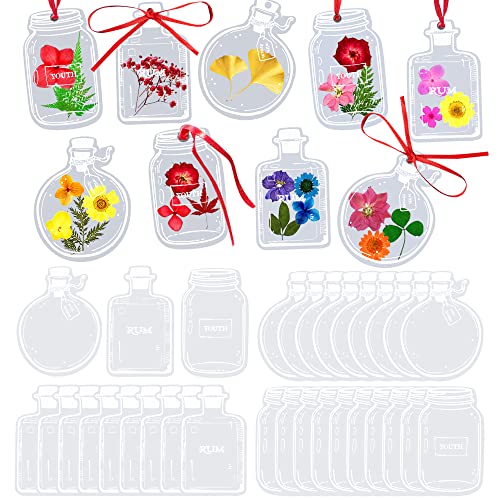 30 Pezzi Segnalibri di Fiori Secchi Trasparenti + Nastro Segnalibro Rosso 10m, Indicatori di Pagina Fai da te, Floral Bookmark Segnalibri di Fiori Secchi Artigianali, Segnalibro di Piante Fatti a Mano