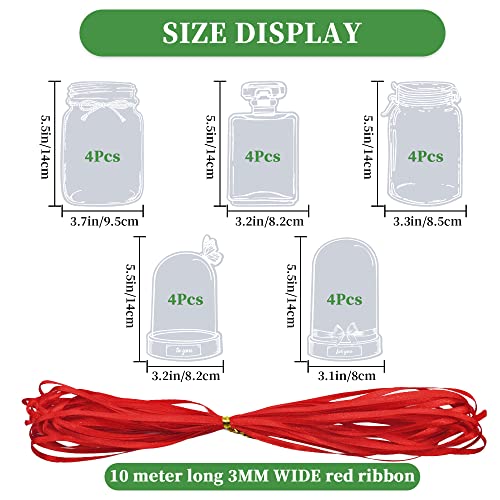 Il tuo pacchetto: 5 forme di segnalibri trasparenti, 4 per un totale di 20 con nastro rosso;