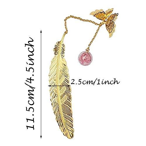 2 Pezzi Segnalibri in Metallo per Libri, Segnalibri Classici, Segnalibro Piuma, Segnalibri in Ottone con Farfalla 3D e Ciondolo con Perle di Vetro per Lettori, Donne, Studenti(Oro, Argento)