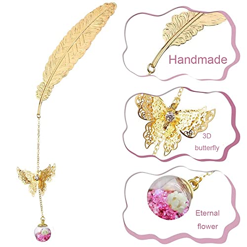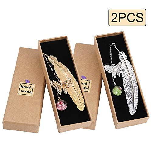 2 Pezzi Segnalibri Metallo, Segnalibri Con Piume In Metallo Dorato, Segnalibro Argento, Pendenti Farfalla Segnalibro, Sono Regali Unici Per Bambini, Studenti, Insegnanti e Amici Da Leggere