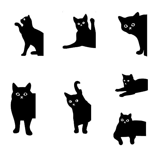 AAED 7 Pezzi Segnalibro Magnetico Gatto Curioso Colore Nero, Regalo di Halloween e Natale per Bambini, Segnalibri Bambini,Segnalibri Natalizi