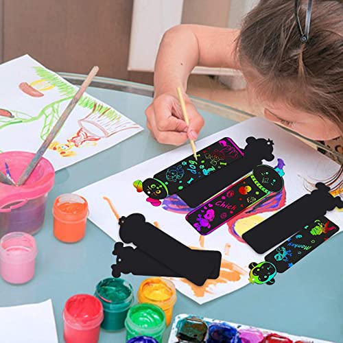 32 Pezzi Segnalibro, VEGCOO Segnalibro Scratch - Set Segnalibri Artistici con Graffi di Animali, con 32 Corde Colorate e 32 Penna in Legno per Feste/Scuola/Studenti/Forniture Artigianali per Bambini