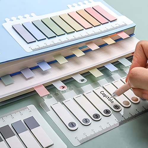 1200 Pezzi Segnapagina Adesivi con Righello.6 Set Segnalibri Colorati conRighello.Etichette Adesive Schede.Schede Indice Appiccicose per Note. Scrivibili Sticky Notes Colorati in due colori abbinati.