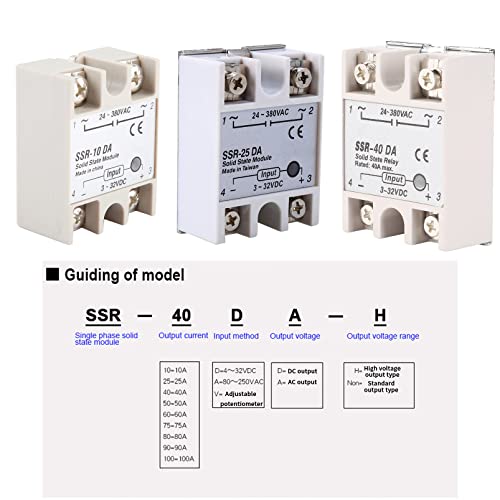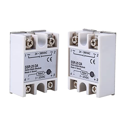 2 pezzi Relè a semiconduttore, monofase, SSR-40DA 40A (ingresso 3-32V DC, uscita 24-380V AC), un modulo ideale per il sistema di controllo automatico (SSR-25DA)