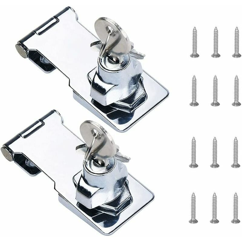Materiale: realizzato in lega di zinco e ferro di alta qualità, pulito, durevole e solido, resistente all'usura, alla ruggine e alla corrosione. Contenuto della confezione: confezione e dimensioni: 2 lucchetti con 4 chiavi e viti. Scheda di blocco: 80*32 mm, serratura: 35*30 mm, diametro del foro della vite: 4 mm. Design funzionale: non è necessario un design di blocco aggiuntivo. Comodo, pratico e facile da aprire e chiudere. Installazione facile da usare: posiziona il lucchetto dove vuoi, fissalo con le nostre viti, regola la testa del lucchetto a forma di croce per bloccarlo. Può essere sbloccato ruotando la chiave di 90 gradi. Ampiamente usato: blocca ovunque tu abbia bisogno di sicurezza lontano dal furto. Adatto per ante di armadi, garage, cancelli e cassetti, ecc.