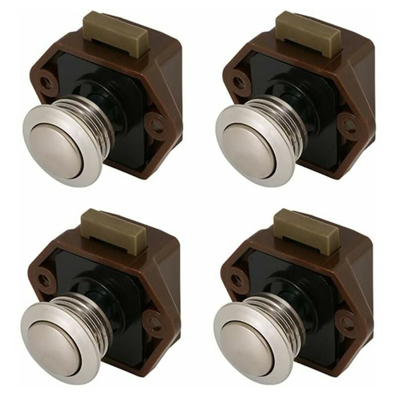 Utilizzo: Adatto per yacht, cassetti per camper, scrivanie di navi, armadi, porte, pensili e altri mobili con uno spessore di 15-27 mm. Materiale: ABS + lega di zinco, design senza chiave, non preoccuparti mai più di dimenticare le chiavi. < strong>Semplice da usare: Il lucchetto basta premere il pulsante, bloccare la linguetta verso il basso, tirare il pulsante per aprire la porta, i pulsanti possono essere utilizzati anche per aprire e bloccare le porte, è possibile utilizzarlo anche quando si stringe la mano. Facile installazione: Dotata di viti e coperchi della serratura di ricambio, la serratura deve essere installata in una posizione che corrisponda alla linguetta e alla porta della serratura. Funziona bene ed è facile da usare. Richiede un foro di 20 mm di diametro per la manopola Pulsante per mobili Chiusura per armadietto senza chiave Camper, caravan, camper Descrizione del prodotto: Mini serratura a pressione per mobili caravan, armadi e cassetti Dotata di viti e tasselli di