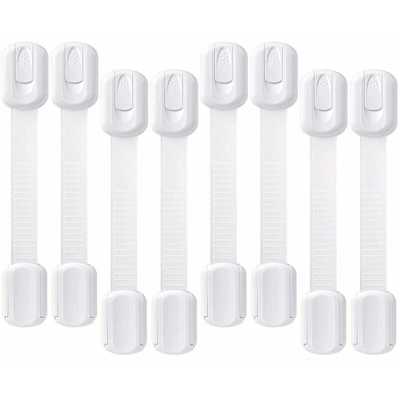 •Il blocco di sicurezza per bambini è regolabile in lunghezza ed è realizzato in plastica atossica di alta qualità. •Adatto per armadi, cassetti, forni, frigoriferi, finestre, cestini, lavastoviglie, ecc.< br/>• La serratura è realizzata in biadesivo ad alta viscosità, facile da installare e da pulire. •Allo stesso tempo, si adatta perfettamente a tutti i tipi di mobili senza danneggiare la superficie. •Sicurezza chiusura per ridurre gli incidenti e proteggere i bambini o gli animali domestici. •La confezione include 8 lucchetti di sicurezza per bambini, ciascuno di 19 x 3,5 cm.