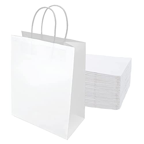 ❤ Buste di carta con manici addensato extra: sacchetti di carta con manici sono realizzati in carta Kraft 130GSM (nota: altri venditori vendono sacchetti di carta 120GSM, 110GSM, 90GSM, 70GSM), forte e resistente ai graffi. rendere questo sacchetto carta con manici ha una capacità portante migliore rispetto alle normali borse di carta con manici a strato singolo.