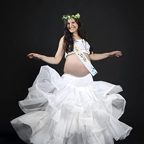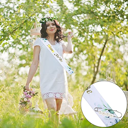 Set di fascia per baby shower, include 1 corona floreale, 1 fascia da spalla mamma per essere, 1 spilla da papà per essere e 1 spilla con perla. Il set starà benissimo su ogni mamma o papà.