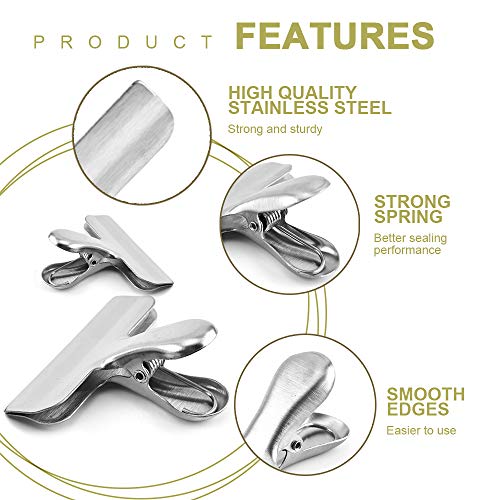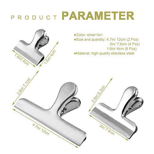 LELE LIFE 12 Pezzi Clip Sigillanti in Metallo, 12 cm 7,6 cm 4 cm Clip per Borsa Clip per Alimenti, Mollette Chiudi Molletta in Acciaio Inox, Cucina Mollette Clip di Cibo per Cucina Domestica Ufficio
