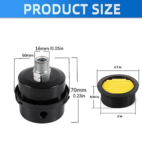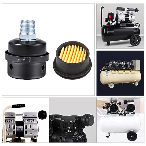 2 Pezzi Silenziatore per Filtro Aria, Silenziatore per Filtro Aria Nero in Metallo, Silenziatore Compressore Aria a Filetto 3/8" 16MM, Silenziatore Compressore Aria, per le Caldaie del Compressore