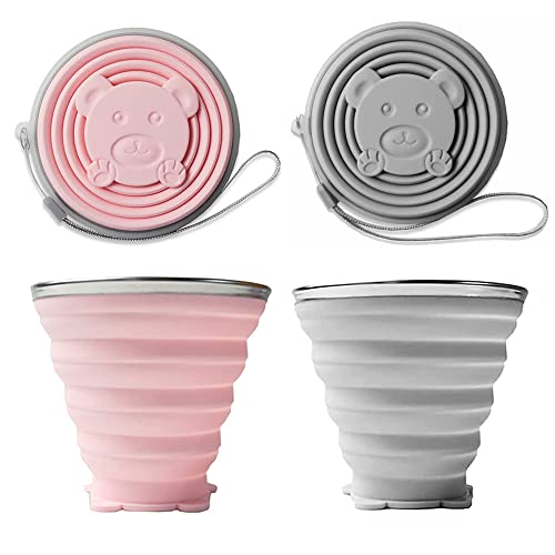 2 Pezzi Silicone Bicchiere Pieghevole,270ML Tazza da Viaggio Pieghevole Tazza D'acqua Portatile con Coperchi,per Viaggio Campeggio Escursionismo e al Lavoro(Grigio+Rosa)