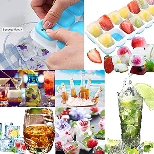 ❄❄ [La confezione contiene] -4 stampi per cubetti di ghiaccio in silicone, 4 coperchi e 1 clip per ghiaccio-facile da prendere e mettere cubetti di ghiaccio. Ogni stampo per cubetti di ghiaccio è 2 * 7, che può congelare un totale di 14 cubetti di ghiaccio.