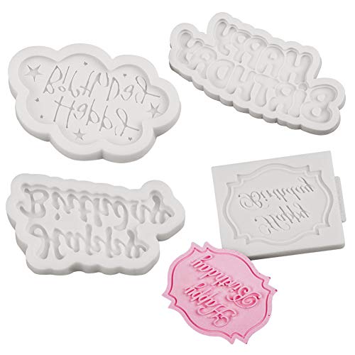4 Pezzi Silicone Stampo di Lettere Happy Birthday Forma di buon compleanno Stampo per torta fondente Alfabeto Stampo per cioccolato Stampo gelato biscotti Set di da forno per feste di compleanno