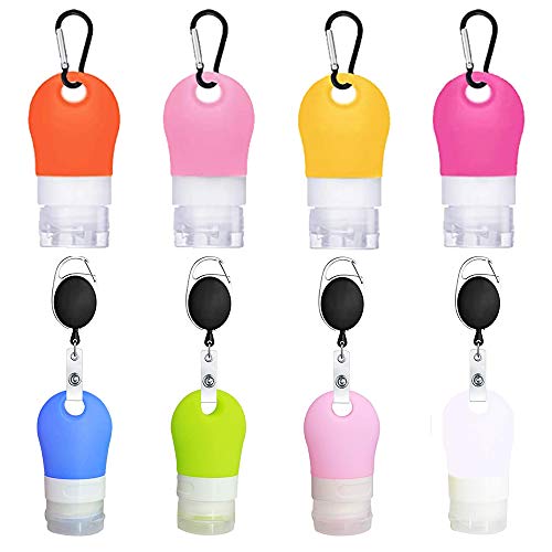 8 pezzi Silicone Travel Bottle Travel Bottle Keychain Set portachiavi, bottiglie da viaggio ricaricabili contenitori da viaggio vuoti e portabadge retrattile, per cosmetici e articoli da toeletta