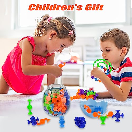Lre Co. 48 pezzi silicone ventosa mattoni vasca da bagno e giocattoli da viaggio per bambini età 3-5, stile Montessori, gioco interattivo genitori-bambino