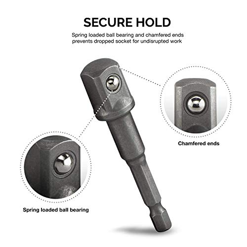 3 pezzi adaptor set made from chrome vanadium steel,Complete with ball bearing locking head, Turns any power drill into a power nut driver;