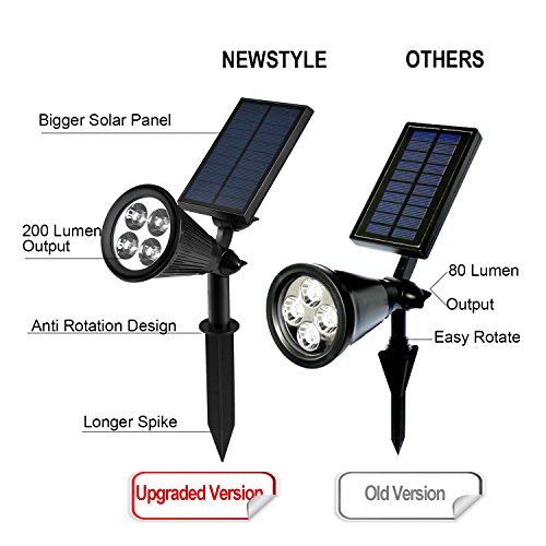 2 Pezzi Luci Solari Esterno, NEWSTYLE 2 Pack IP65 Impermeabile Wireless Faretto Led Solare Auto ON/OFF per Giardino, Esterni, Giardini, Cortili, Fuori Muro ecc