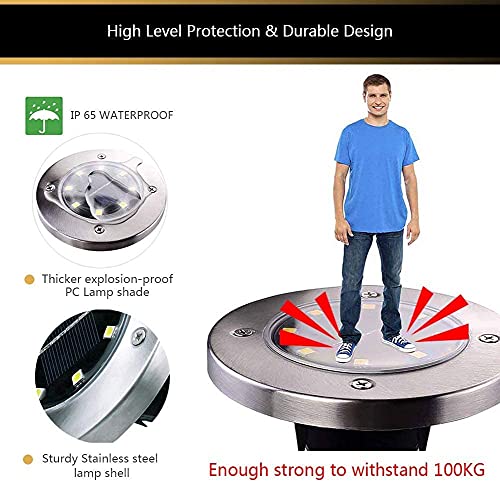 4 Pezzi LED Luce Solari Giardino Esterno,Luce Sepolta Solare Giardino lampade solari da pavimento Luci Solari Giardino LED Luci Solari Luci da Terra Solari da Esterno IP65 Impermeabili in acciaio inox