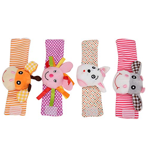 4 pezzi sonagli da polso per bambini e cercatori di piedi modello animale del fumetto sonaglio fasce da polso giocattolo giocattoli educativi neonati 0-2 anni(Animali)
