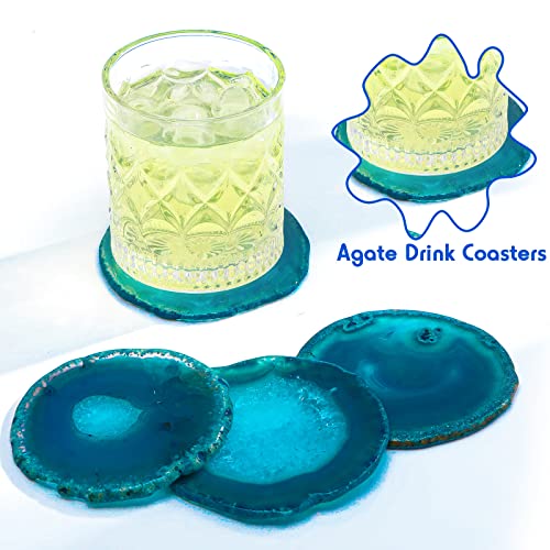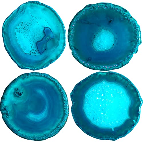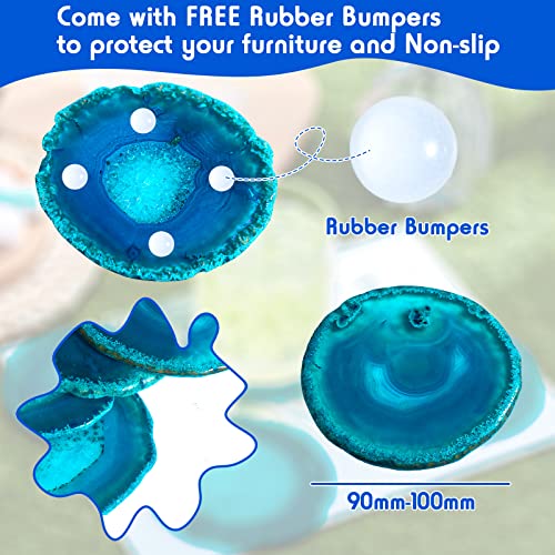 4 Pezzi Sottobicchieri di Agata a Fette di Colore Blu Tinto Sottobicchiere per Bevande Tazza Mat Sottobicchiere in Pietra Naturale Geode con 50 Cuscinetto Antiscivolo in Silicone